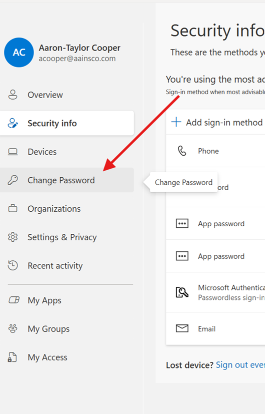 - You may need to change your password through your company’s password portal or on your work computer (e.g., by pressing Ctrl + Alt + Delete and selecting “Change a password”).
