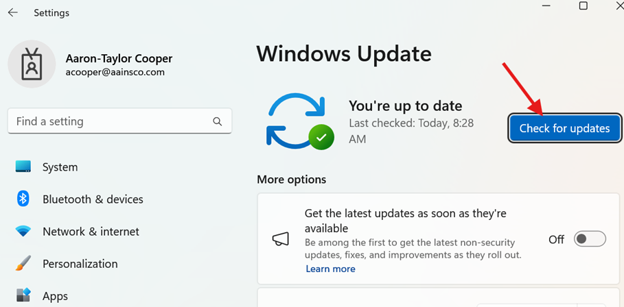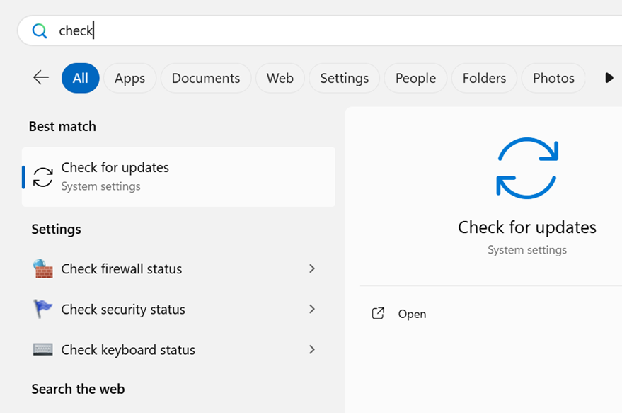 Settings → Windows Update → Check for updates.